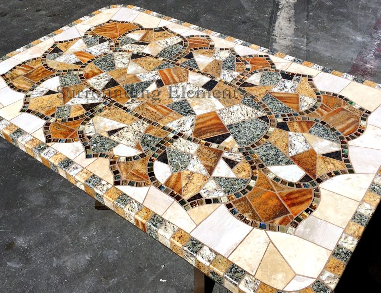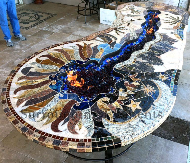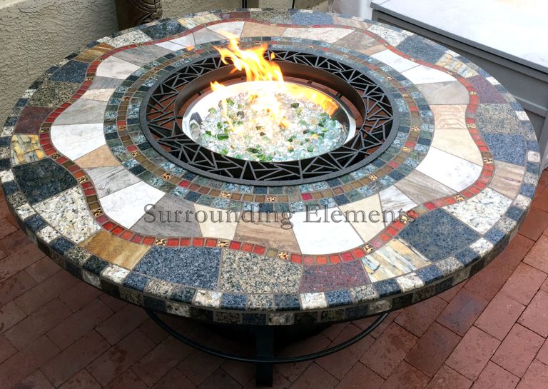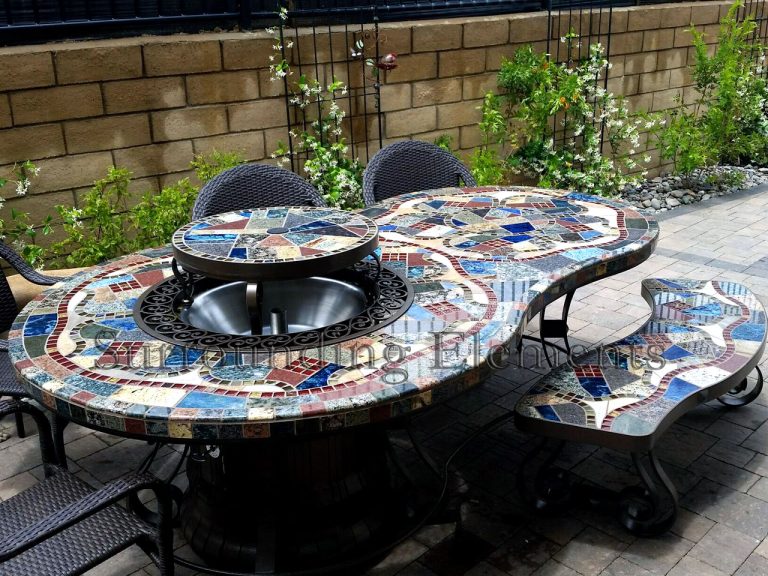 Each table is handcrafted using stone and porcelain mosaic, and designed to serve multiple purposes. You can easily transform it into a fire pit, leg warmer, or ice bucket – all with interchangeable centerpiece. Add a Lazy Susan, or make it a solid tabletop. Let’s bring your vision to life. These components can even be moved to a side stand when not in use, giving you the flexibility to enjoy your table however you like.