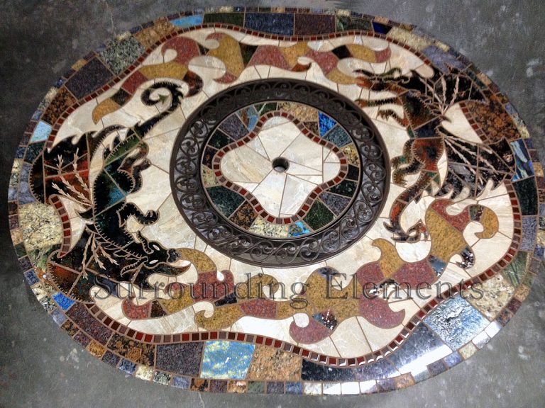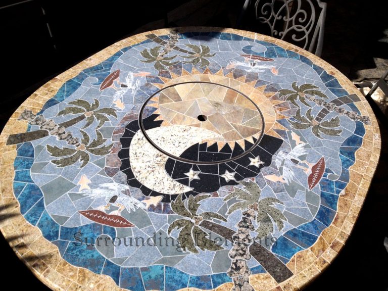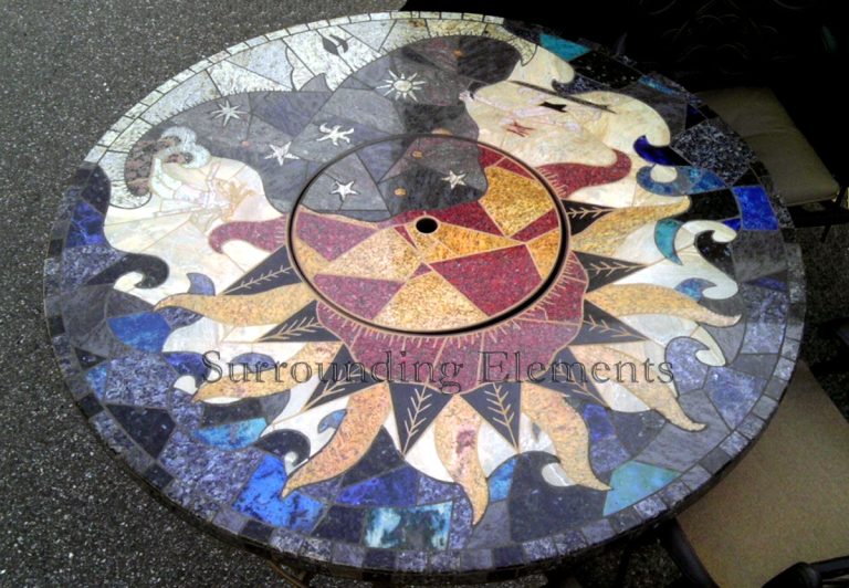 Each table is handcrafted using stone and porcelain mosaic, and designed to serve multiple purposes. You can easily transform it into a fire pit, leg warmer, or ice bucket – all with interchangeable centerpiece. Add a Lazy Susan, or make it a solid tabletop. Let’s bring your vision to life. These components can even be moved to a side stand when not in use, giving you the flexibility to enjoy your table however you like.