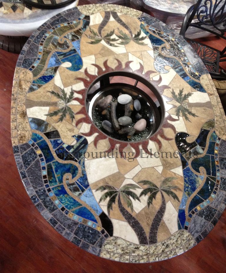 • 5′ x 6′ Oval Table with Crystal Fire and Assorted River Rocks Palm Wave Design