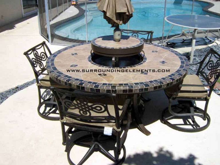Each table is handcrafted using stone and porcelain mosaic, and designed to serve multiple purposes. You can easily transform it into a fire pit, leg warmer, or ice bucket – all with interchangeable centerpiece. Add a Lazy Susan, or make it a solid tabletop. Let’s bring your vision to life. These components can even be moved to a side stand when not in use, giving you the flexibility to enjoy your table however you like.