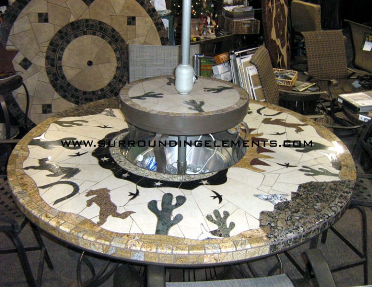 Each table is handcrafted using stone and porcelain mosaic, and designed to serve multiple purposes. You can easily transform it into a fire pit, leg warmer, or ice bucket – all with interchangeable centerpiece. Add a Lazy Susan, or make it a solid tabletop. Let’s bring your vision to life. These components can even be moved to a side stand when not in use, giving you the flexibility to enjoy your table however you like.
