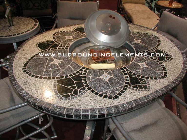 Each table is handcrafted using stone and porcelain mosaic, and designed to serve multiple purposes. You can easily transform it into a fire pit, leg warmer, or ice bucket – all with interchangeable centerpiece. Add a Lazy Susan, or make it a solid tabletop. Let’s bring your vision to life. These components can even be moved to a side stand when not in use, giving you the flexibility to enjoy your table however you like.