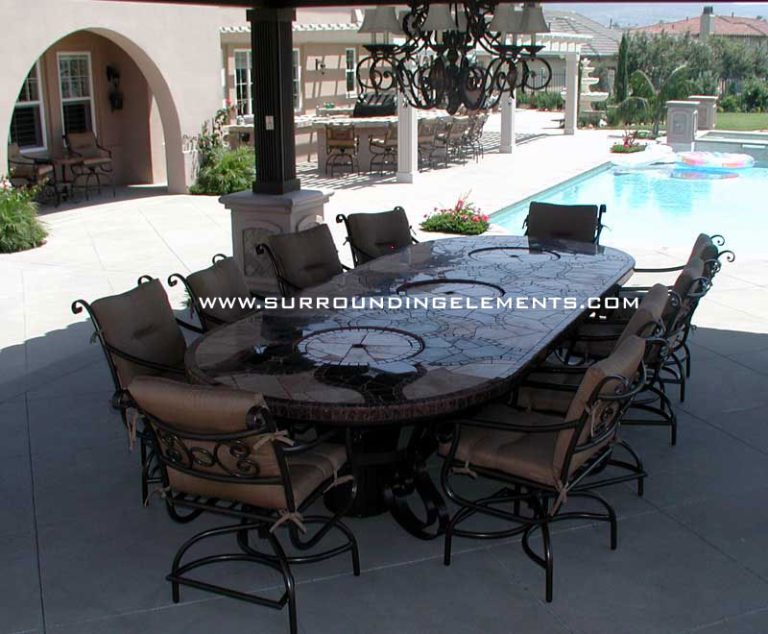 Each table is handcrafted using stone and porcelain mosaic, and designed to serve multiple purposes. You can easily transform it into a fire pit, leg warmer, or ice bucket – all with interchangeable centerpiece. Add a Lazy Susan, or make it a solid tabletop. Let’s bring your vision to life. These components can even be moved to a side stand when not in use, giving you the flexibility to enjoy your table however you like.