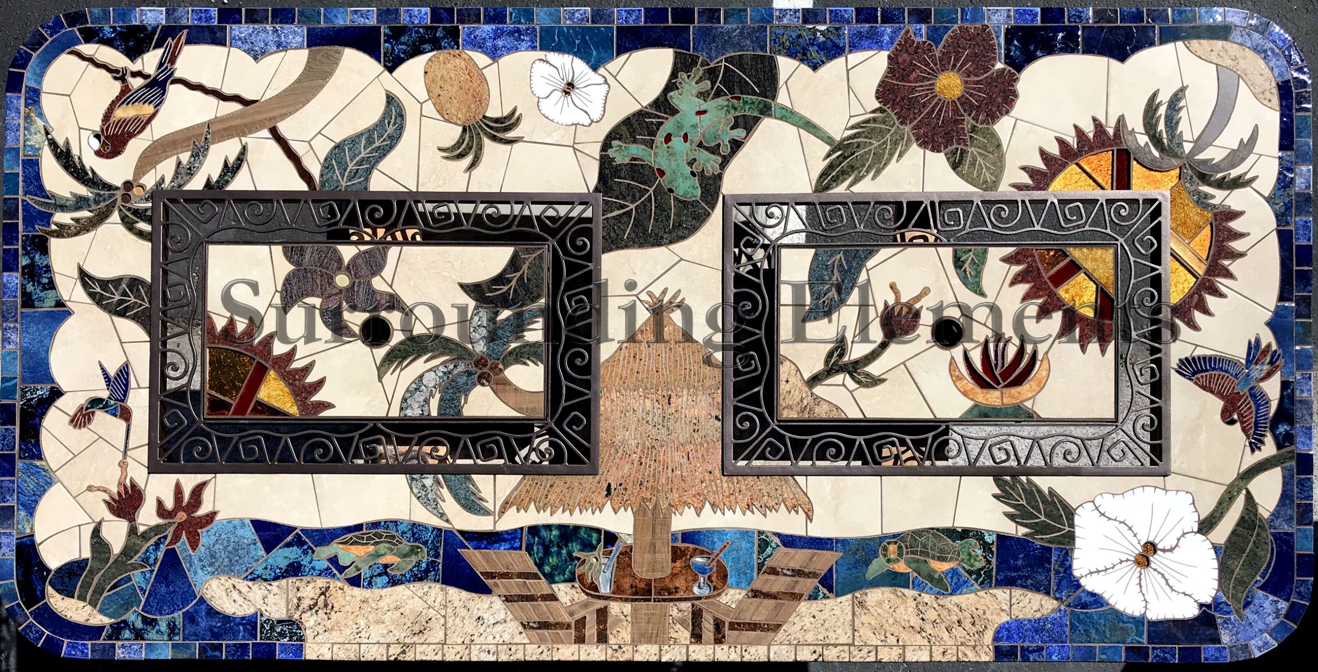 101″ x 51″ Rectangle Tropical Theme with 2 Rectangle Center Plugs and 2 Ornate Rings