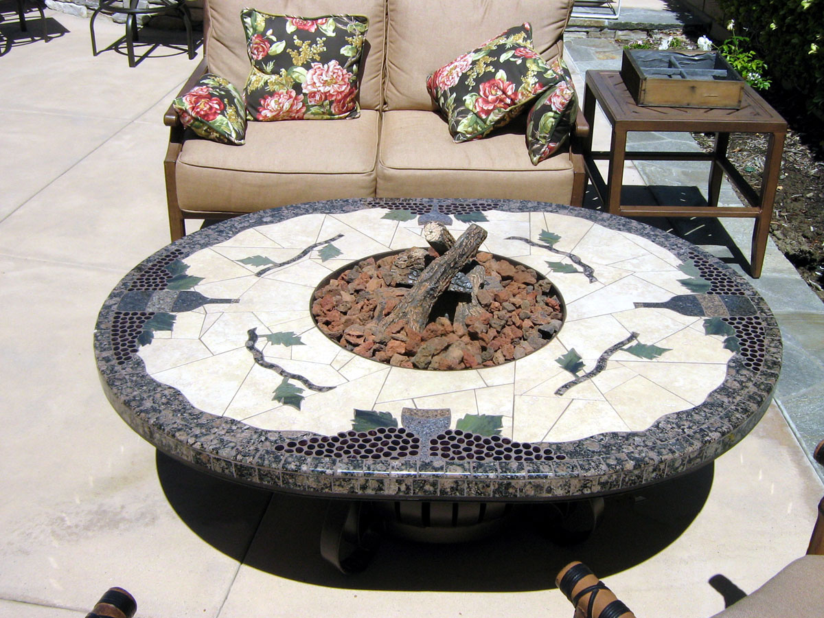 4′ x 5′ Grape and Wine Bottle Design Firepit Table with Fire Log Set