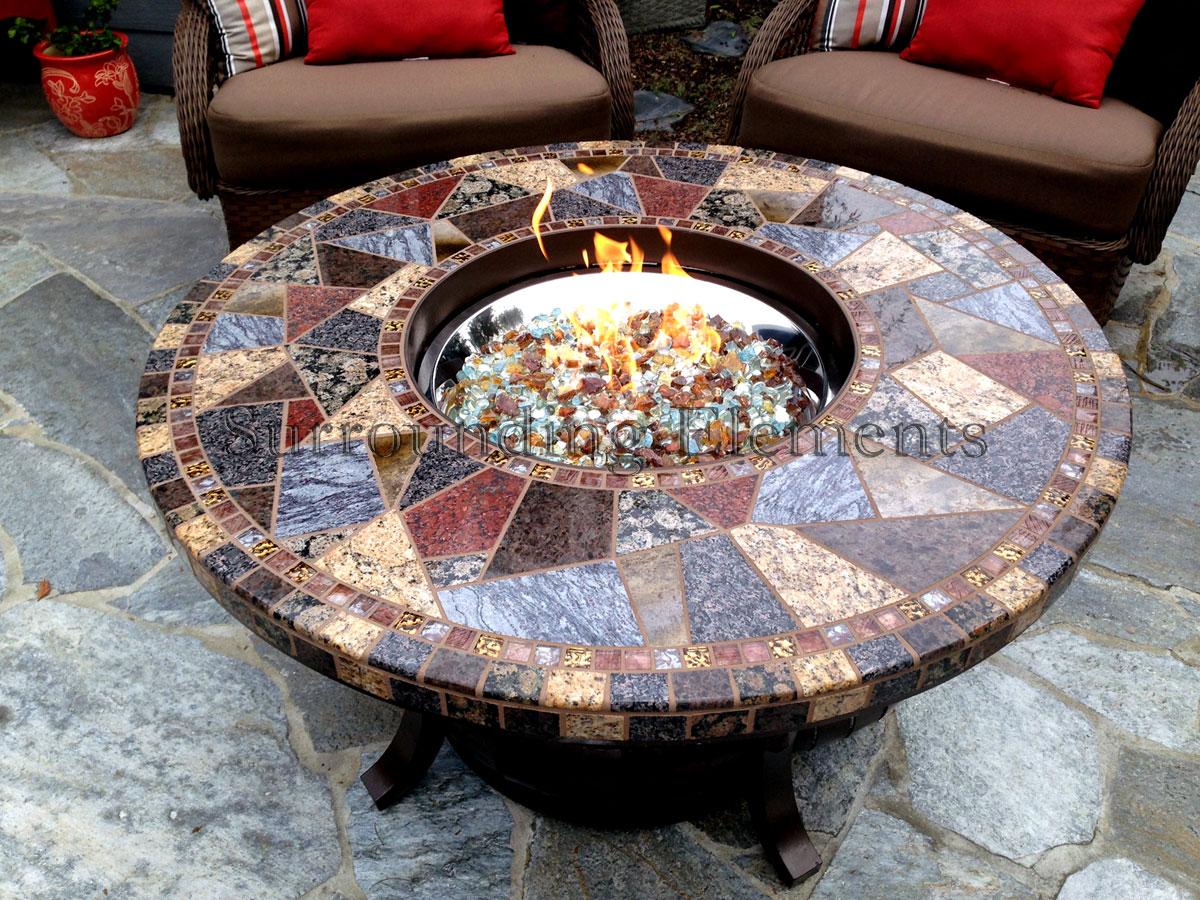 46″ Chat Height Firepit Table with Crystal Fire. Mixed Mosaic Design