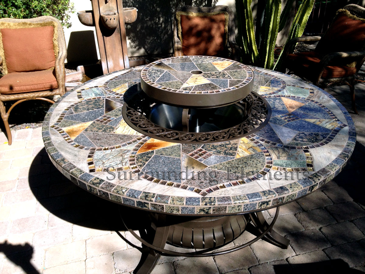 5′ Round Table in a Tahoe Design Shown with Ornate Ring & Center Plug