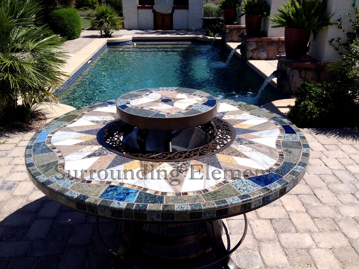5′ Round Table in a Tahoe Design Shown with Ornate Ring & Center Plug