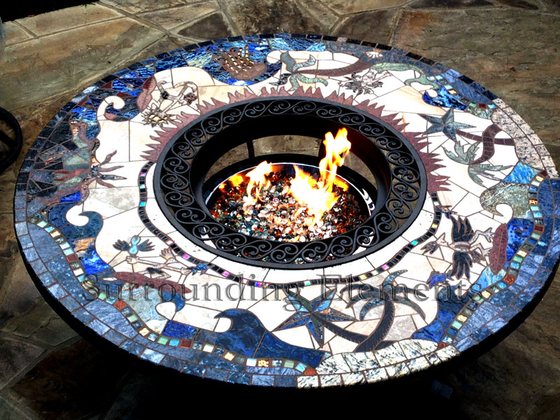 5′ Round Leg Warmer Table with Crystal Fire and Ornate Ring