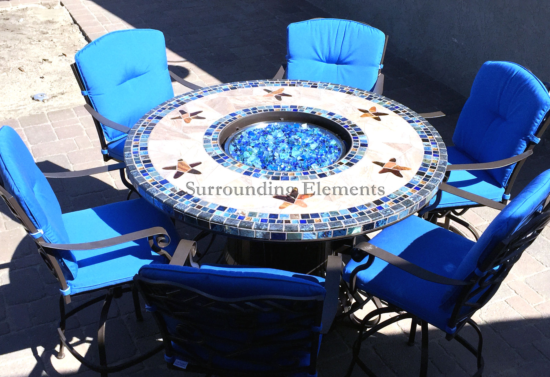 5′ Round Leg Warmer Table with Crystal Fire Starfish Design