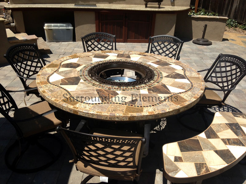 5′ Round Leg Warmer Table with Crystal Fire. Wavy Mediterranean Design