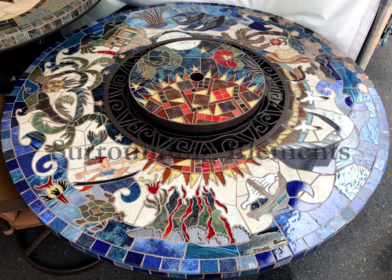 5′ Round Legwarmer Table in an Ocean & Desert Design