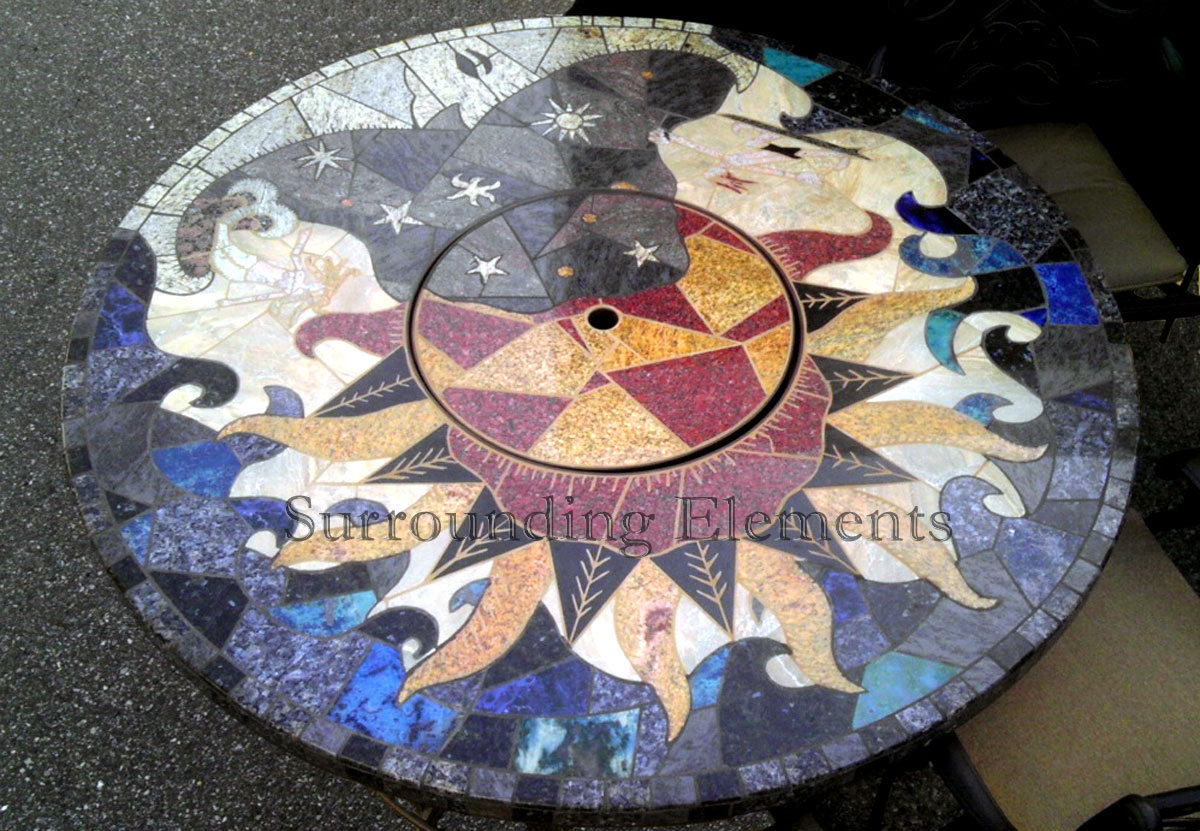 5′ Round Table on Iron Base with Center Plug Custom Sun and Moon Design