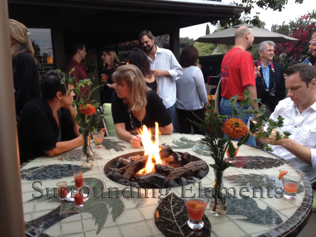 5′ Round Table on Iron Base with Log Burners Custom Leaf Design
