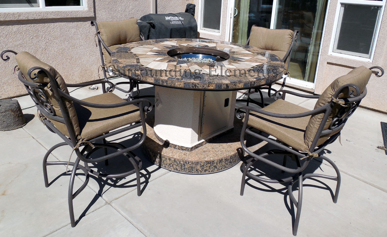 5′ Round Table with Crystal Fire on Stucco Base. Volcano Wave Design