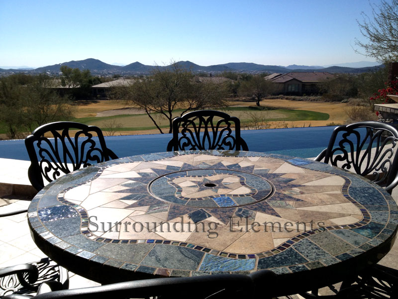 5′ Round Table in a Tahoe Design Shown with Ornate Ring & Center Plug