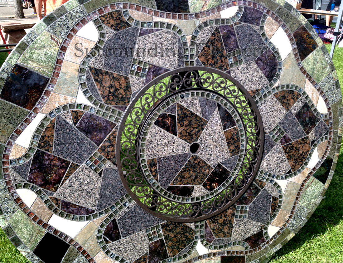 5′ Round Table in a Tahoe Design Shown with Ornate Ring & Center Plug