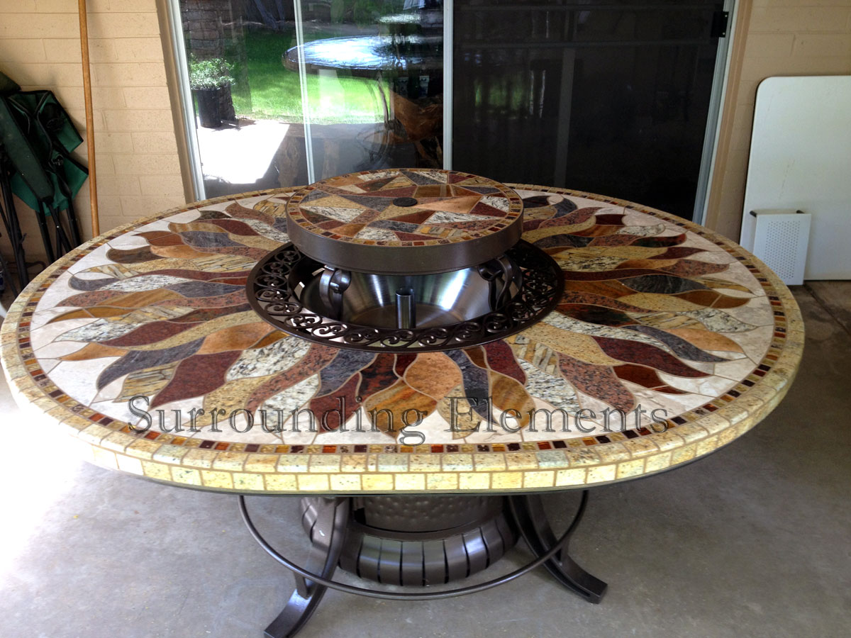 5′ Round Table in a Tahoe Design Shown with Ornate Ring & Center Plug