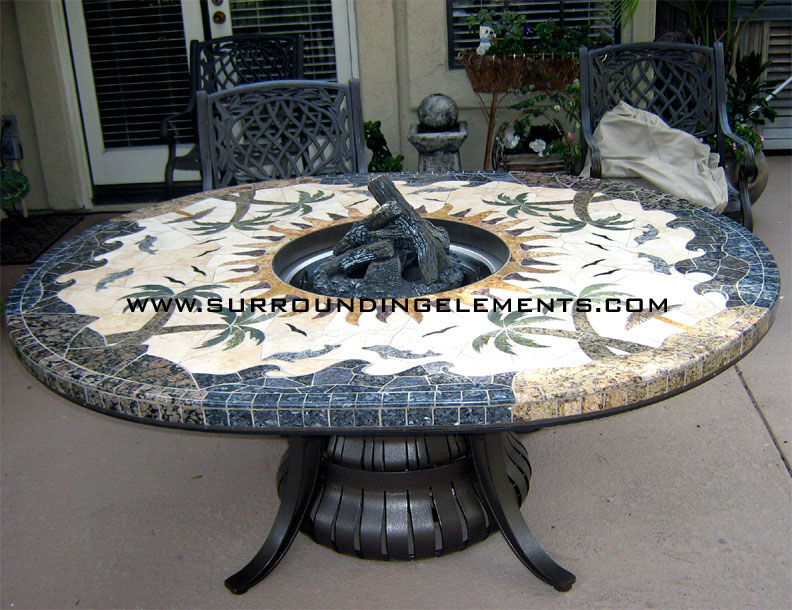 5′ x 6′ Oval Table, Palm & Dolphin Design with Fire Logs