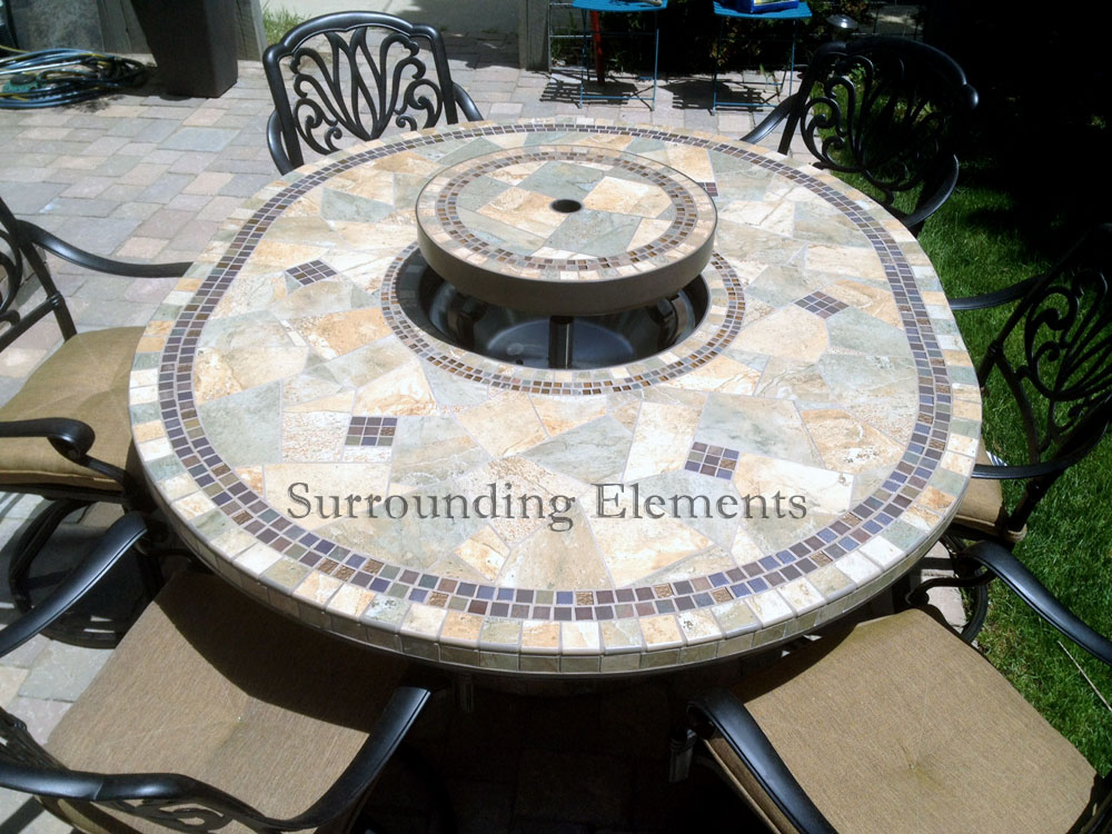 5′ Round Table in a Tahoe Design Shown with Ornate Ring & Center Plug