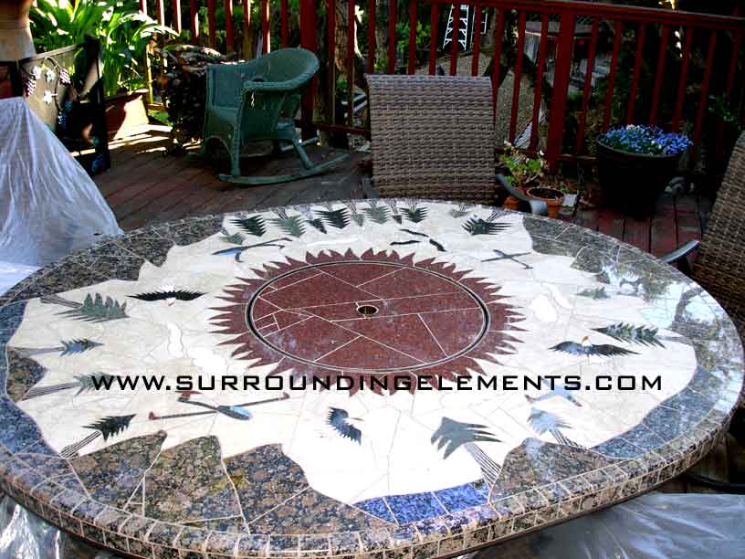 5′ Round Table in a Tahoe Design Shown with Ornate Ring & Center Plug