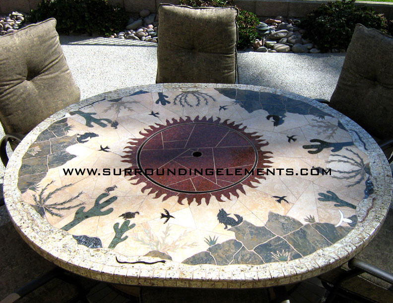 5′ Round Table in a Tahoe Design Shown with Ornate Ring & Center Plug