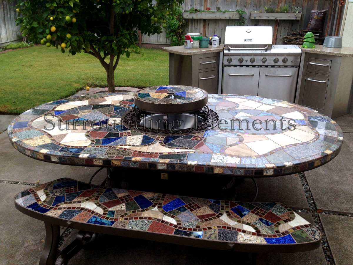 5′ Round Table in a Tahoe Design Shown with Ornate Ring & Center Plug