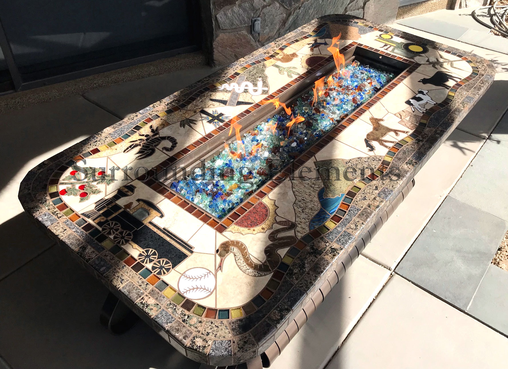 72″ x 32″ Coffee Table in a Custom 2 State Design with Long Glass Burner