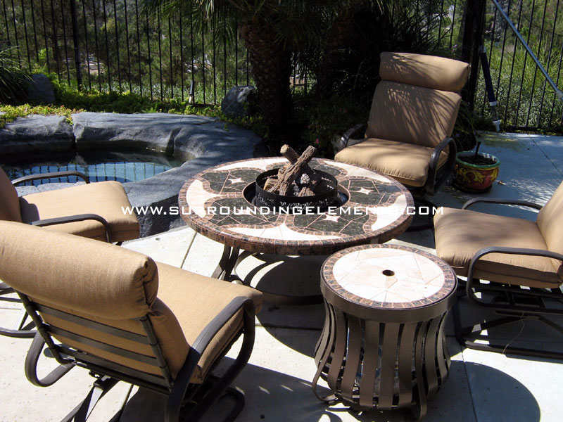 Firepit Table, Vineyard Design with Firepit Side Stand and 4 chairs