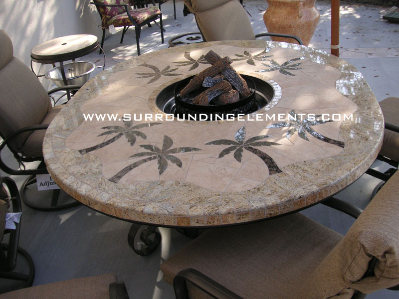 Oval Table in Palm Tree Design with Fire Logs and Side Stand with Ice Bucket
