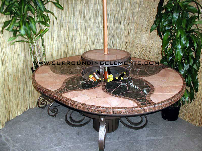 Oval Table, Vineyard Design with Lazy Susan, Ice Bucket and Umbrella