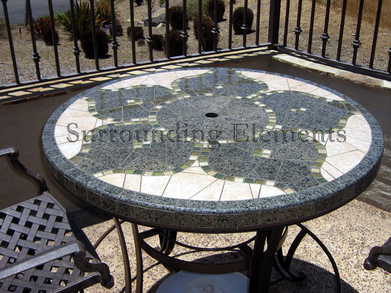 5′ Round Table in a Tahoe Design Shown with Ornate Ring & Center Plug