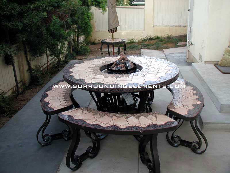 Round Table, Volcanic Wave Design With Fire Logs and Benches