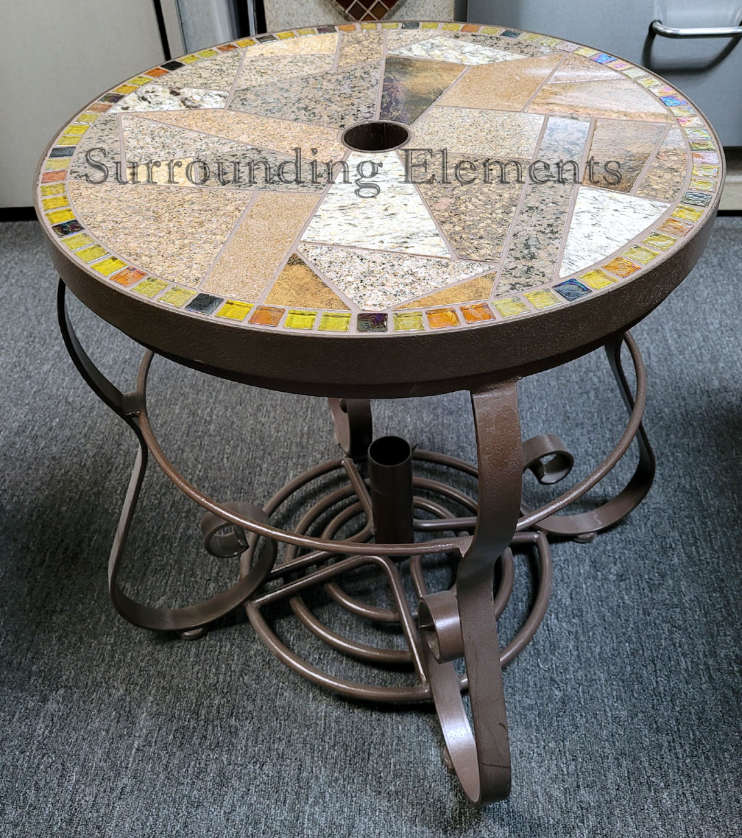 5′ Round Table in a Tahoe Design Shown with Ornate Ring & Center Plug