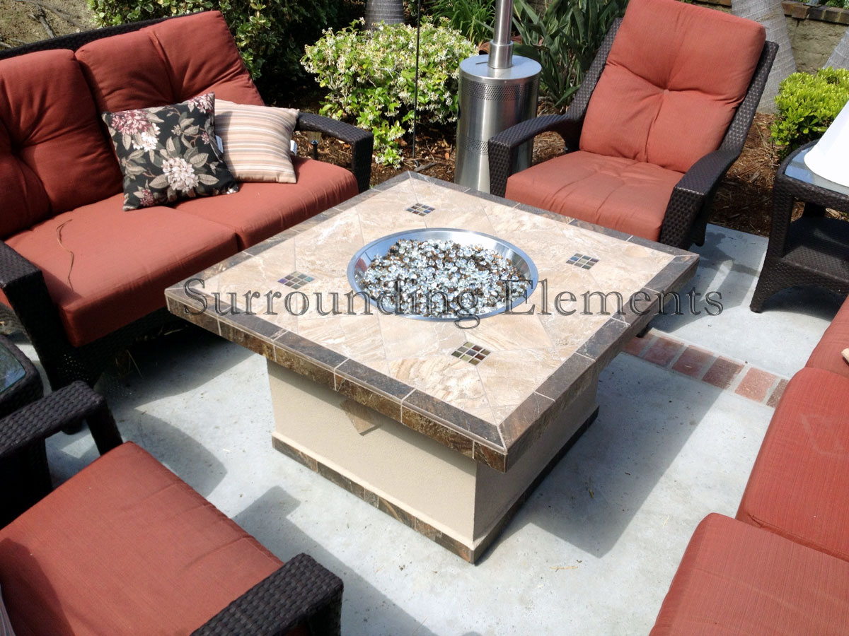 Square Chat Height Firepit on Stucco Base with Glass Burner Mediterranean Design
